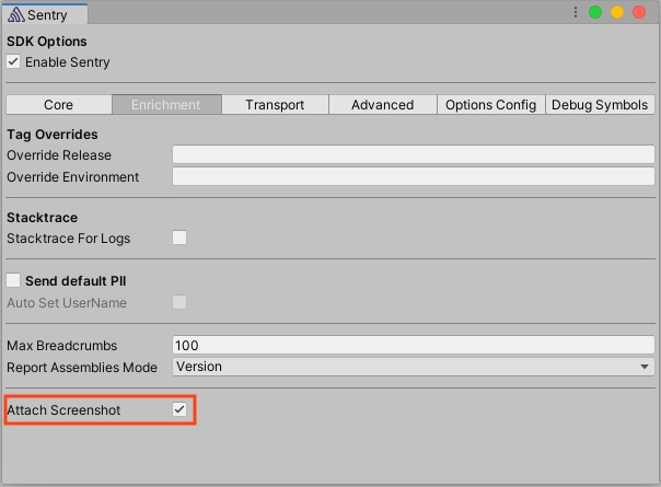 options.AttachScreenshot = true;